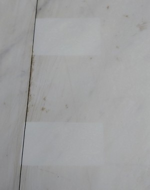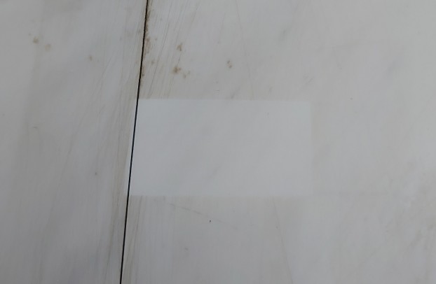 四角にキレイになった2箇所は、テストで目だたない場所で既存ワックスを剥がしてみました。