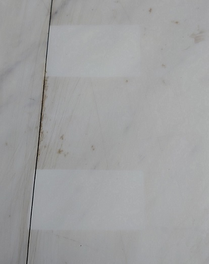 床に付いたキズも靴で踏みつけられた泥汚れも、既存ワックスの上に付いたものだったんです・・・ね。